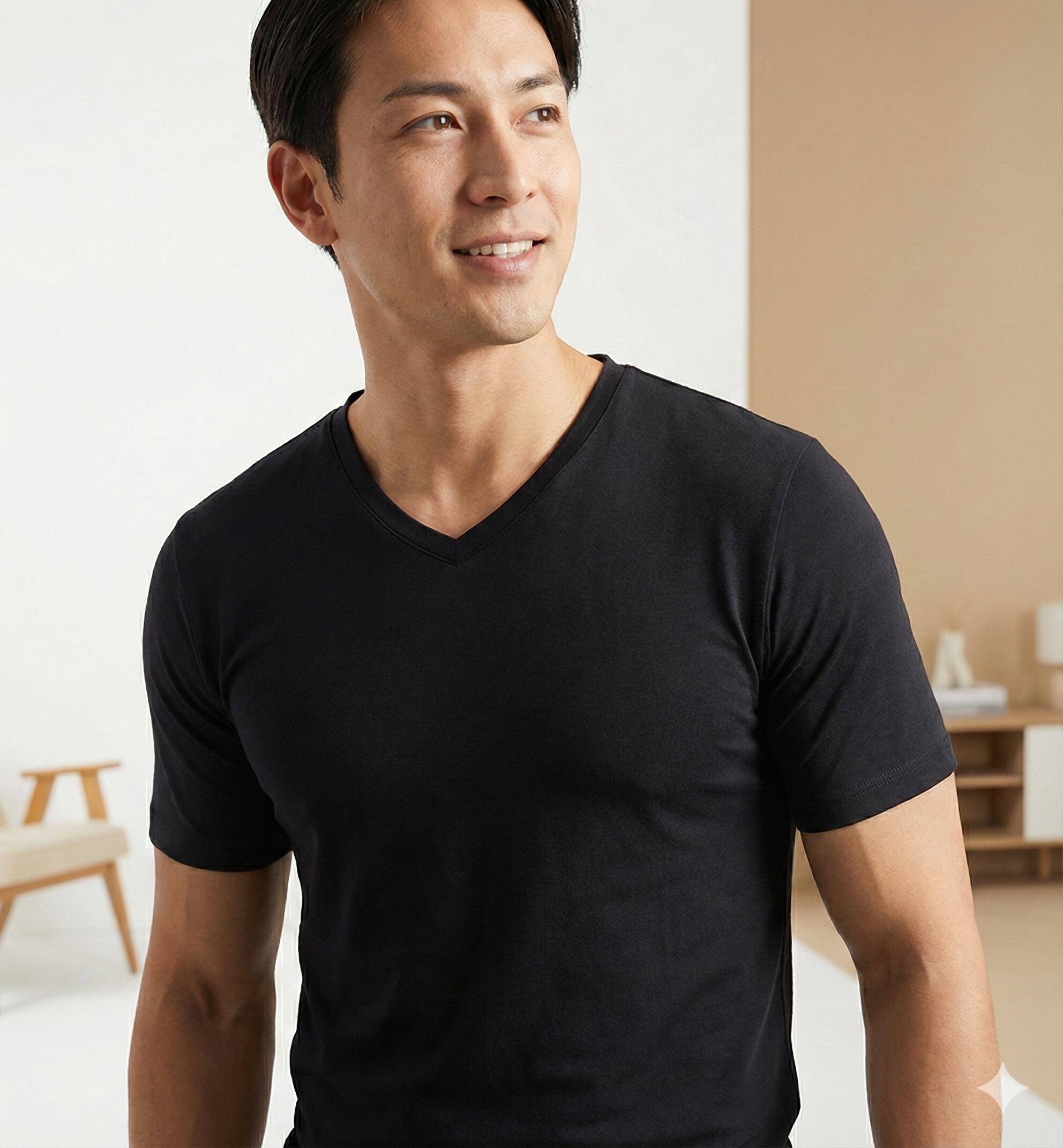 “自分らしさを際立たせる、コットンVネックシャツ。”